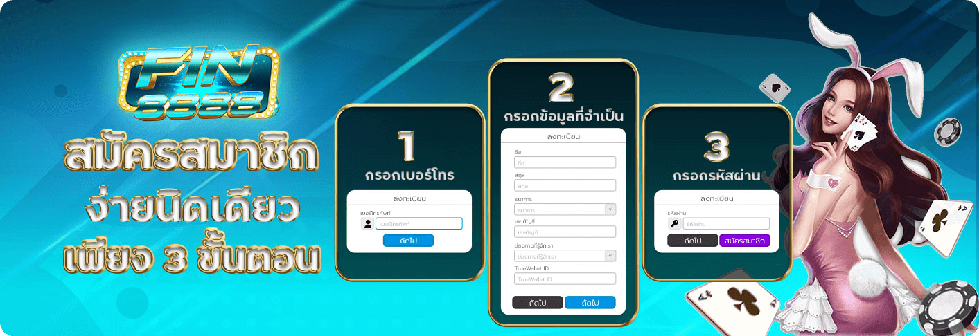 เพียงสมัครสมาชิกง่ายๆ ผ่านหน้าเว็บไซต์ ก็สามารถเริ่มต้นสนุกกับการเดิมพันได้ทันที ด้วยเงินเดิมพันขั้นต่ำเพียง 1 บาท เหมาะสำหรับทั้งมือใหม่ที่ต้องการทดลองเล่น และนักพนันมืออาชีพที่ต้องการเดิมพันในวงเงินสูง มาร่วมเป็นส่วนหนึ่งของครอบครัว Fin8888 และสัมผัสประสบการณ์การเดิมพันออนไลน์ที่ดีที่สุดไปด้วยกัน